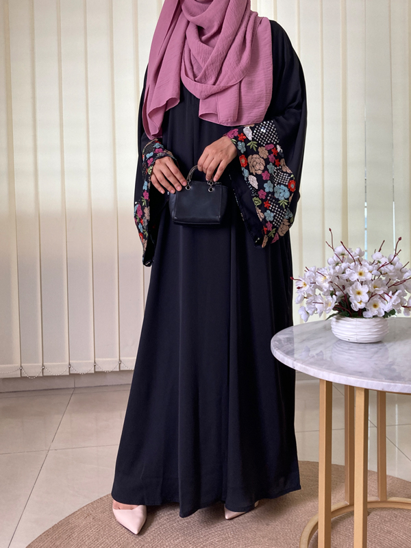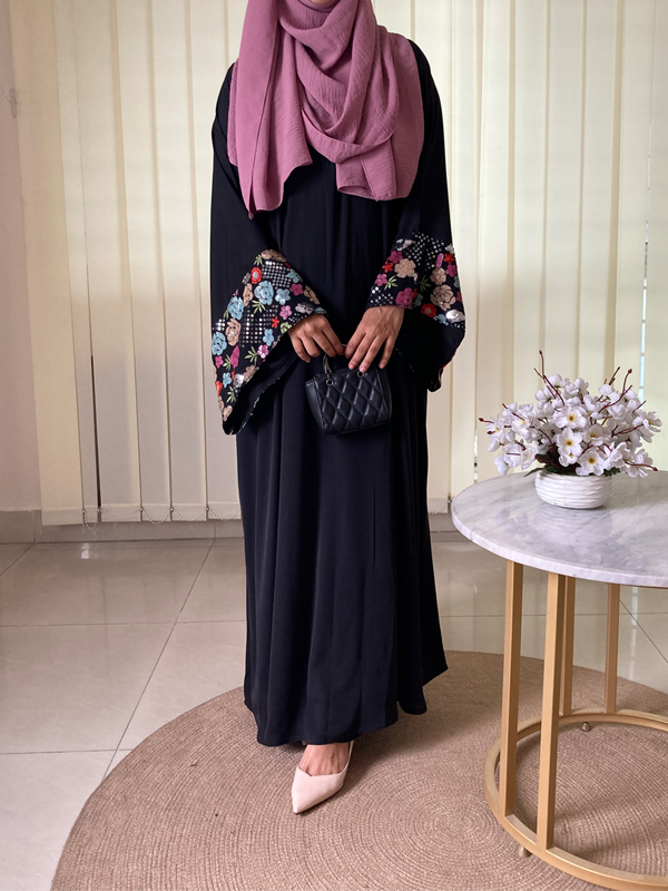 REGULAR KAFTAN BLACK WITH LACEWORK