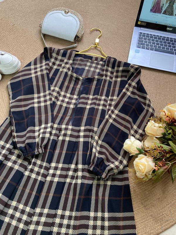 ALIA GOWN BROWN CHECKERED