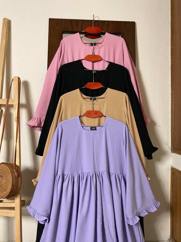 One of our BEST SELLER Ariba gown is now back in stock. It has layers with buttons with front opening. Each layer is embellished with lace. It doesn’t have pockets. Cherry fabric, no iron needed.
