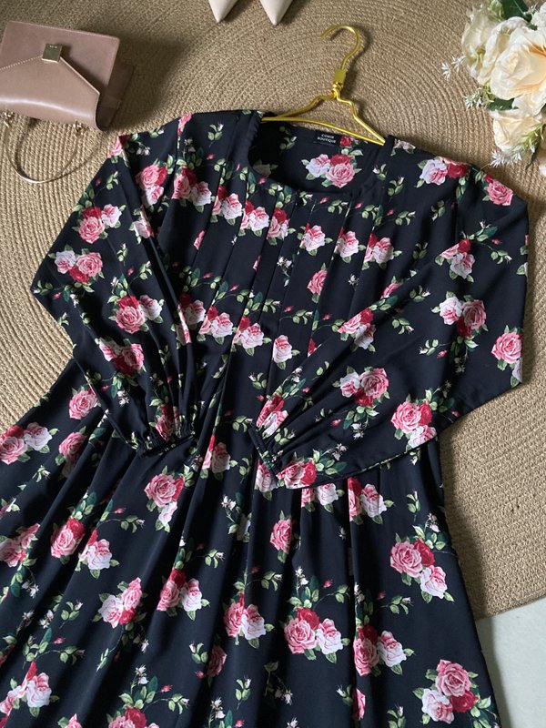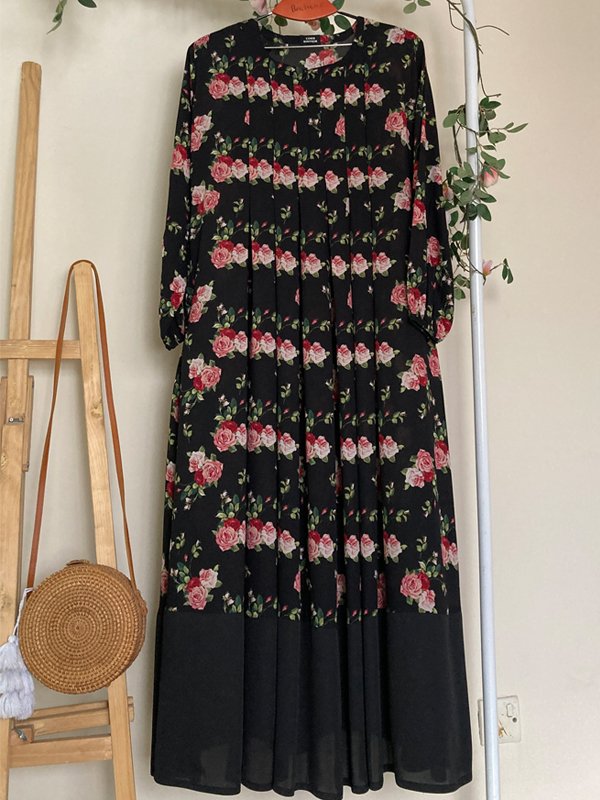 RUBAB ABAYA BLACK FLORAL