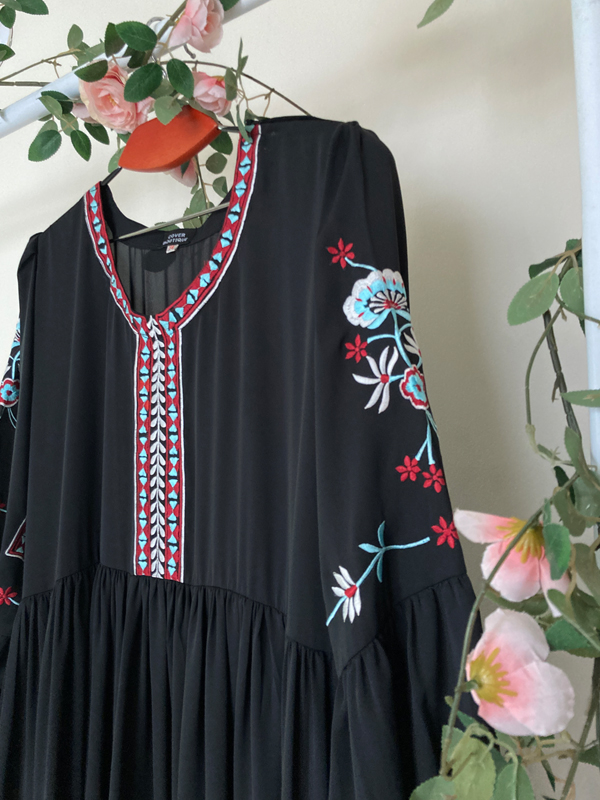 - Maha gown has an embroidered upper part of the body and on the sleeves..