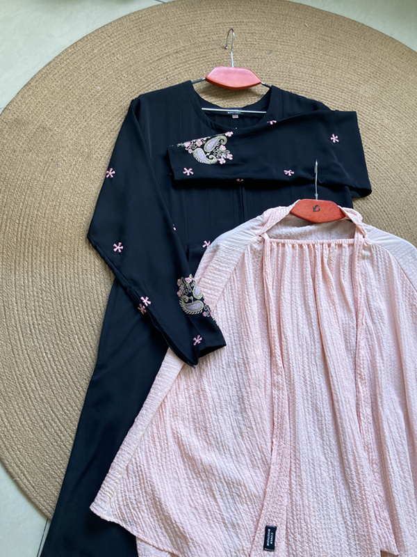 - Peach Maimuna khimar + Tahmina Embroidery gown