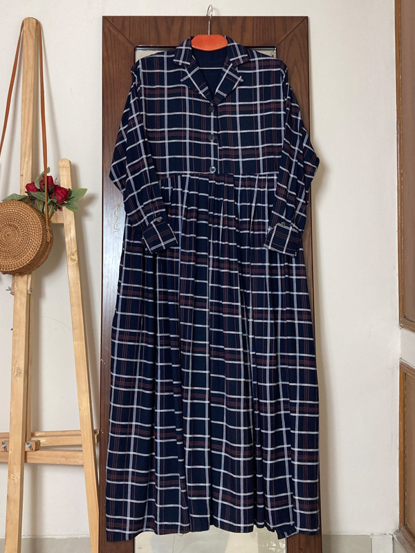 Nafia Gown Navy checkered print for regular wear!!