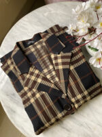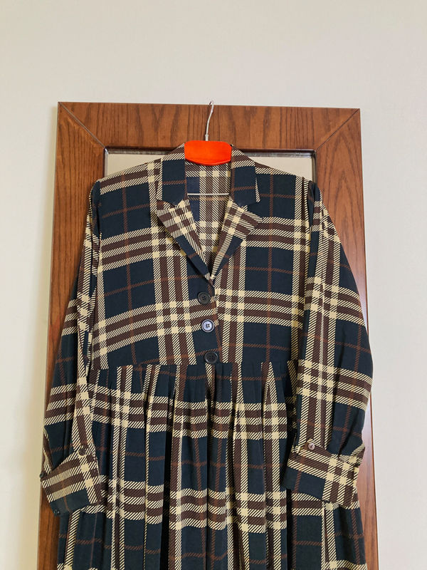 ZAKIA GOWN DARK BEIGE CHEKERED
