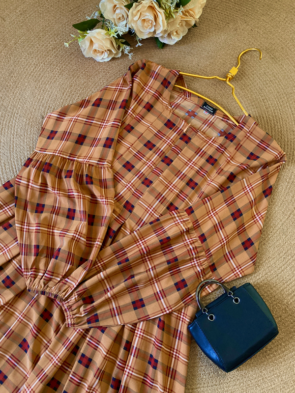 RAZIA GOWN BROWN CHECKERED