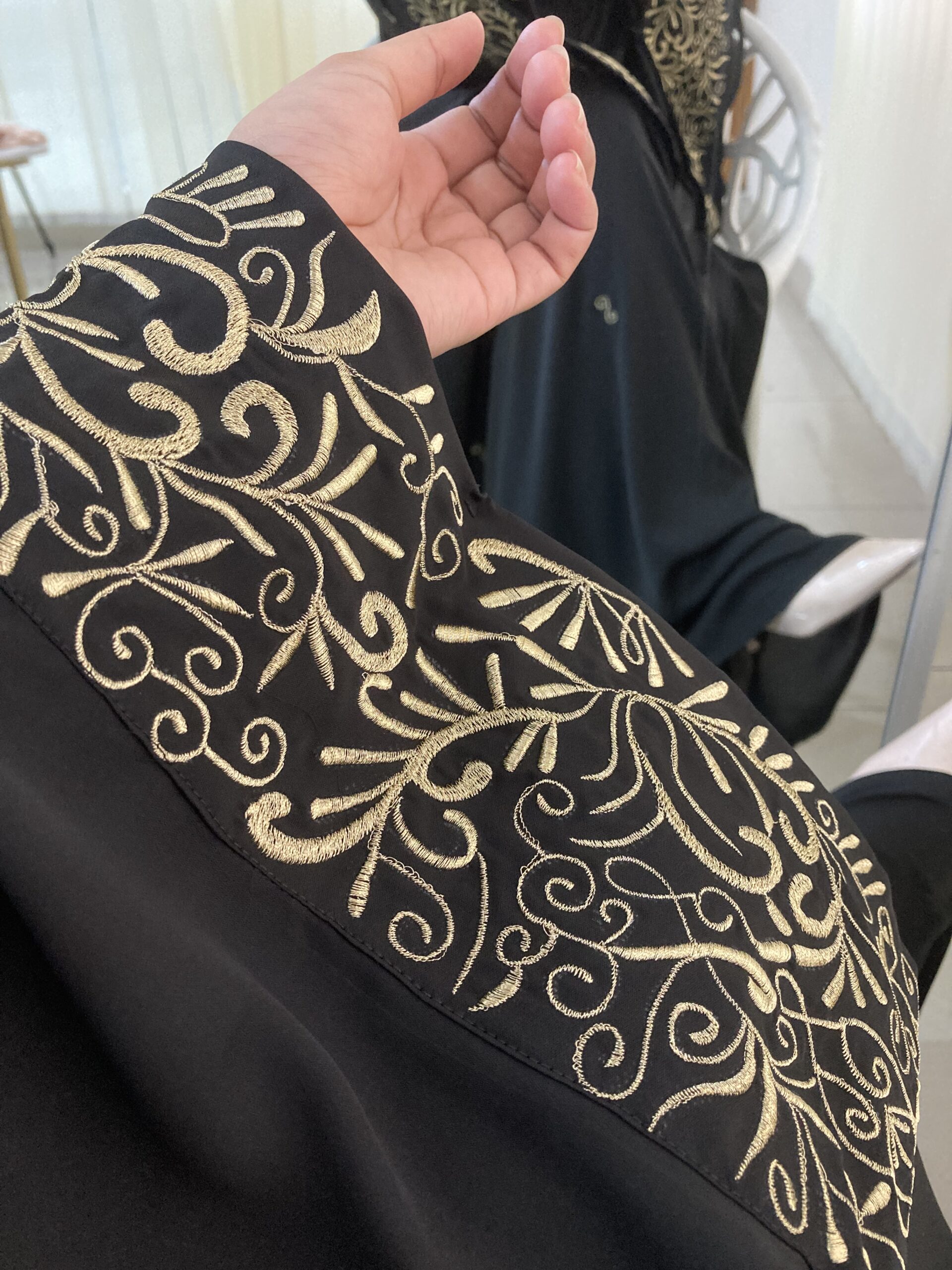 - It is a full-length kaftan with a heavy embroidery sleeve.