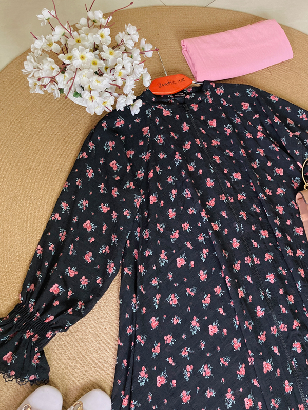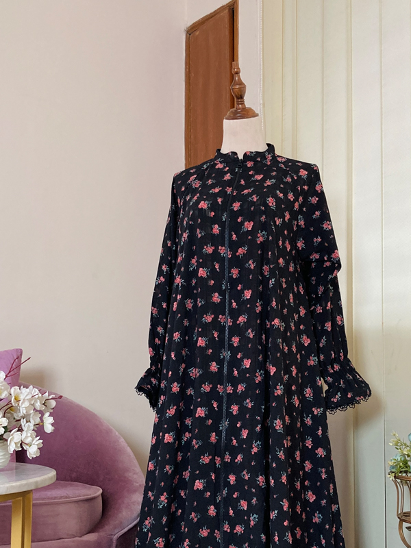 Rubab Abaya is introducing a new texture and a new pattern in everyday wear. We searched and we sourced a new textured fabric for this abaya, whose pattern is inspired by one of our imported Saudi abayas.