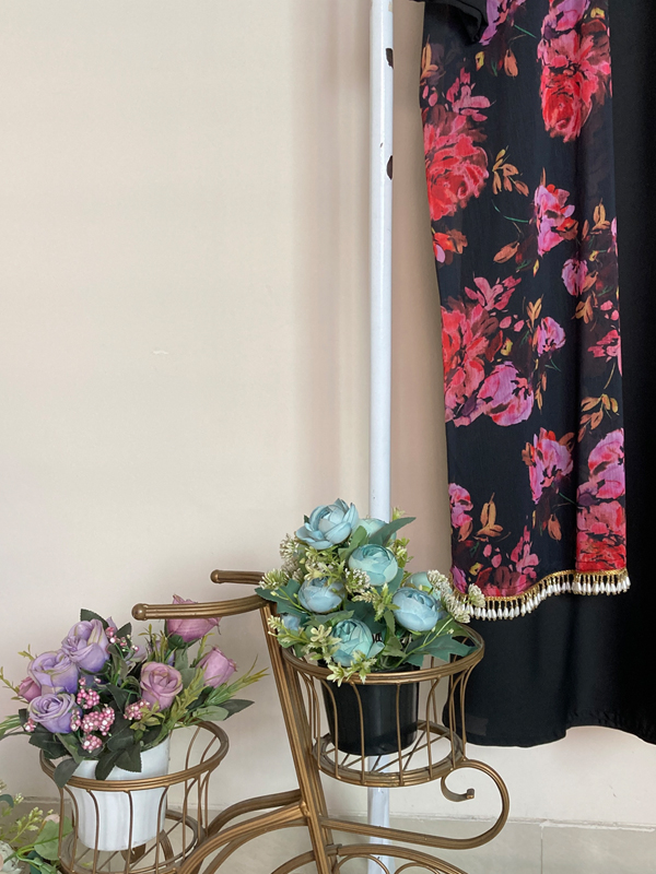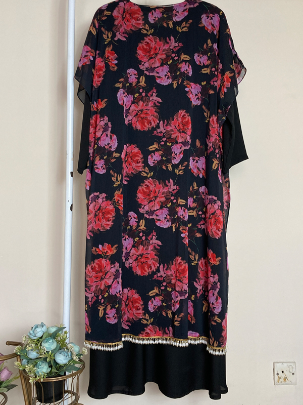 Black floral printed cape