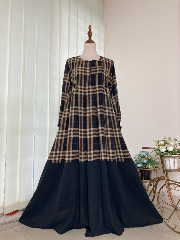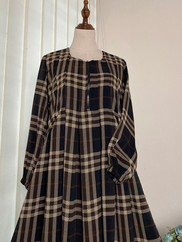 ZAKIA GOWN DARK BEIGE CHEKERED