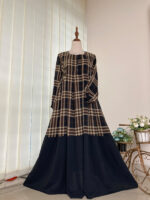 - The material is Korean georgette for the checkered part and alex for the plain part.