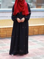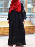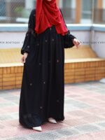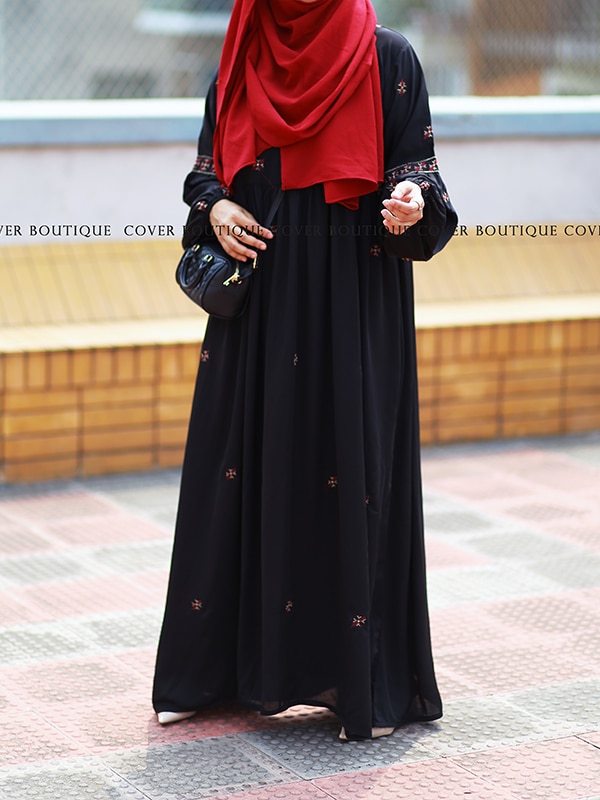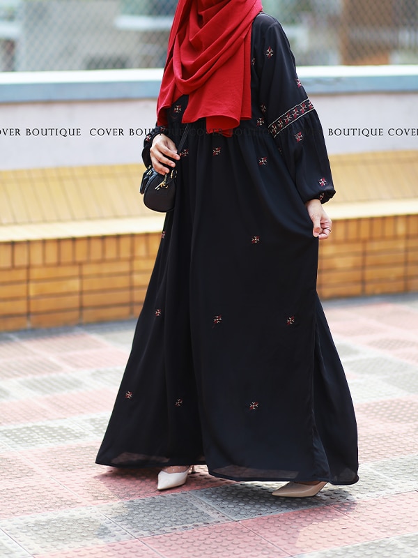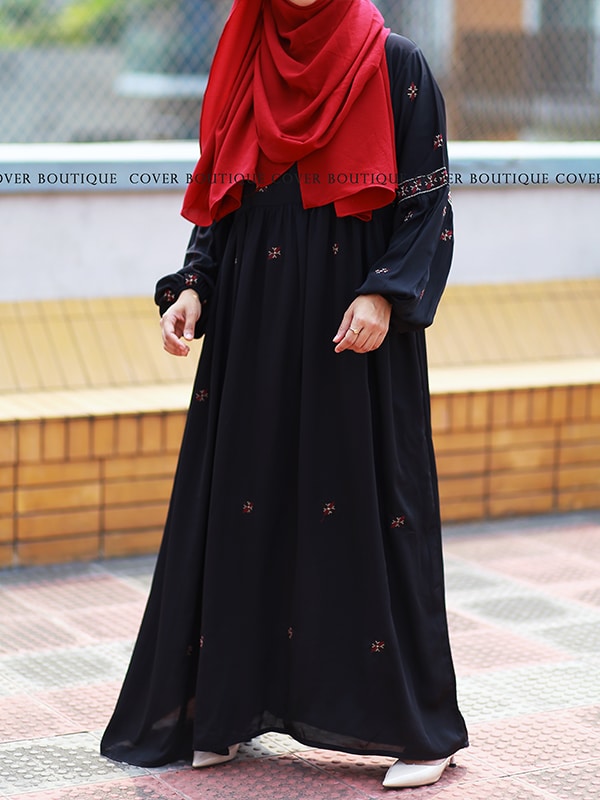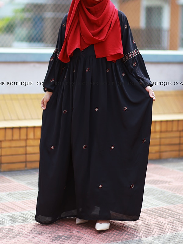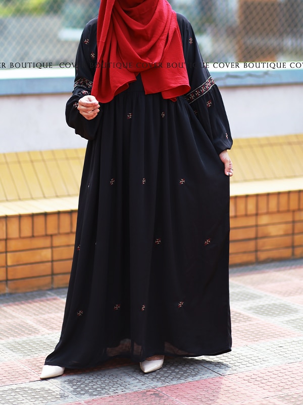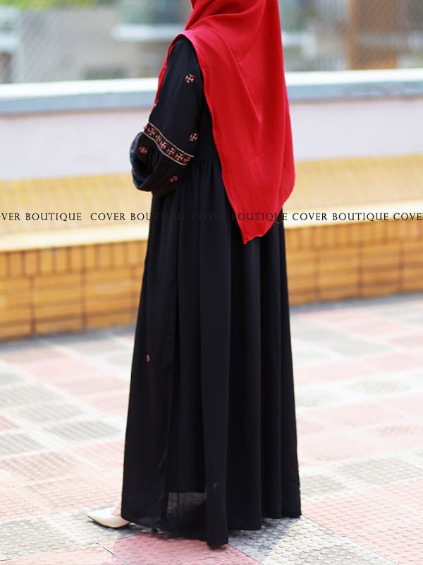 - Zoya gown has embroidery all over the body and on the sleeves.