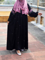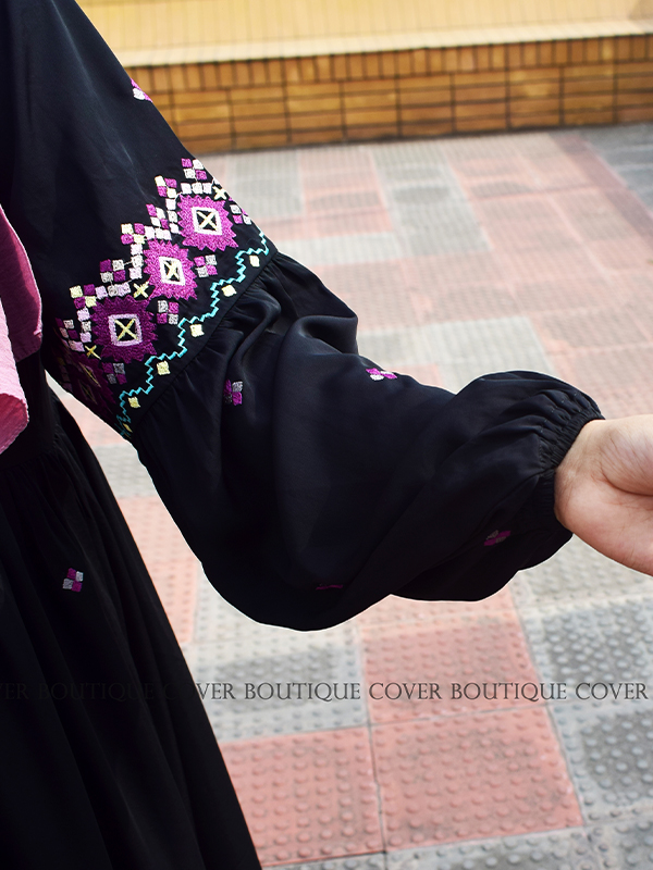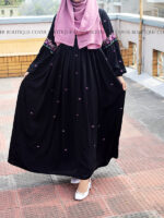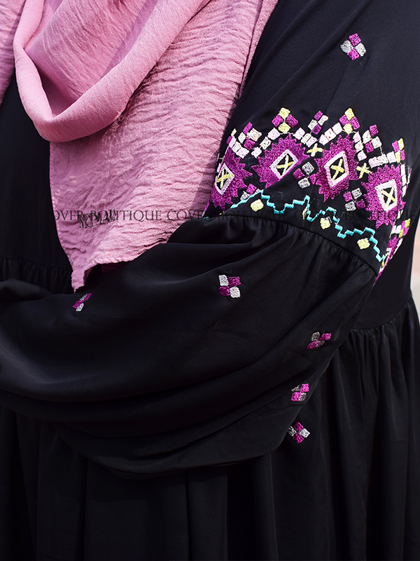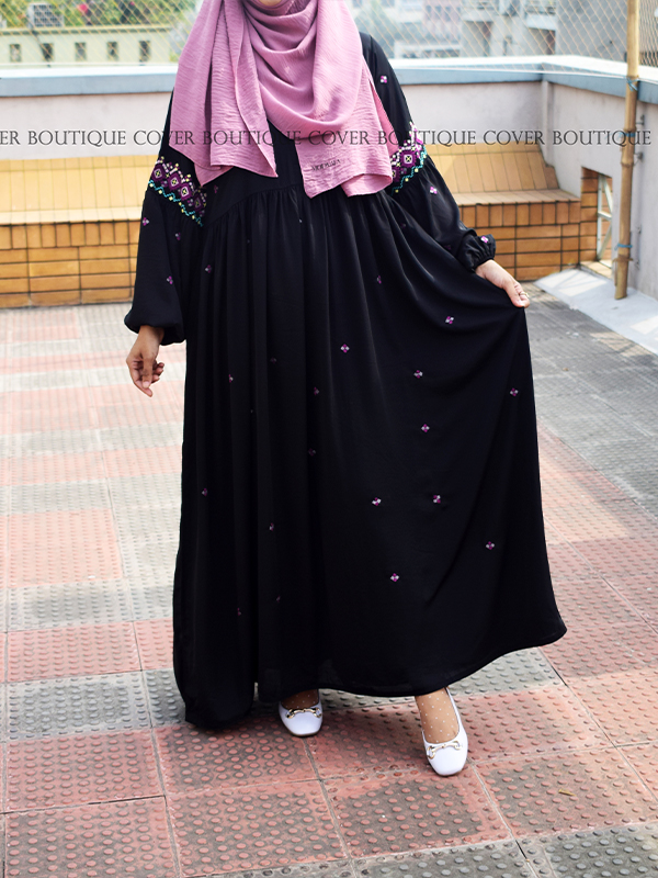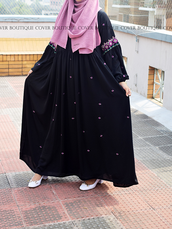 - Zoya gown has embroidery all over the body and on the sleeves.