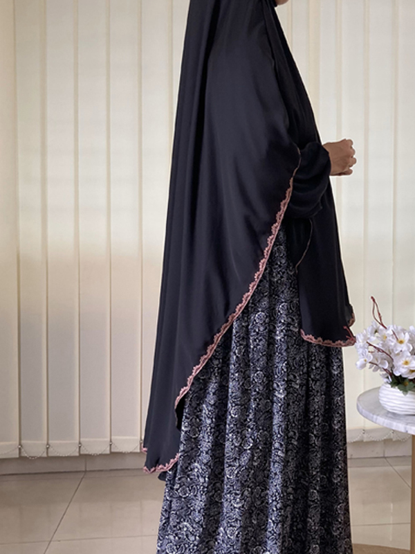 - Zwairiya khimar is a plain khimar with an elegant lacework.